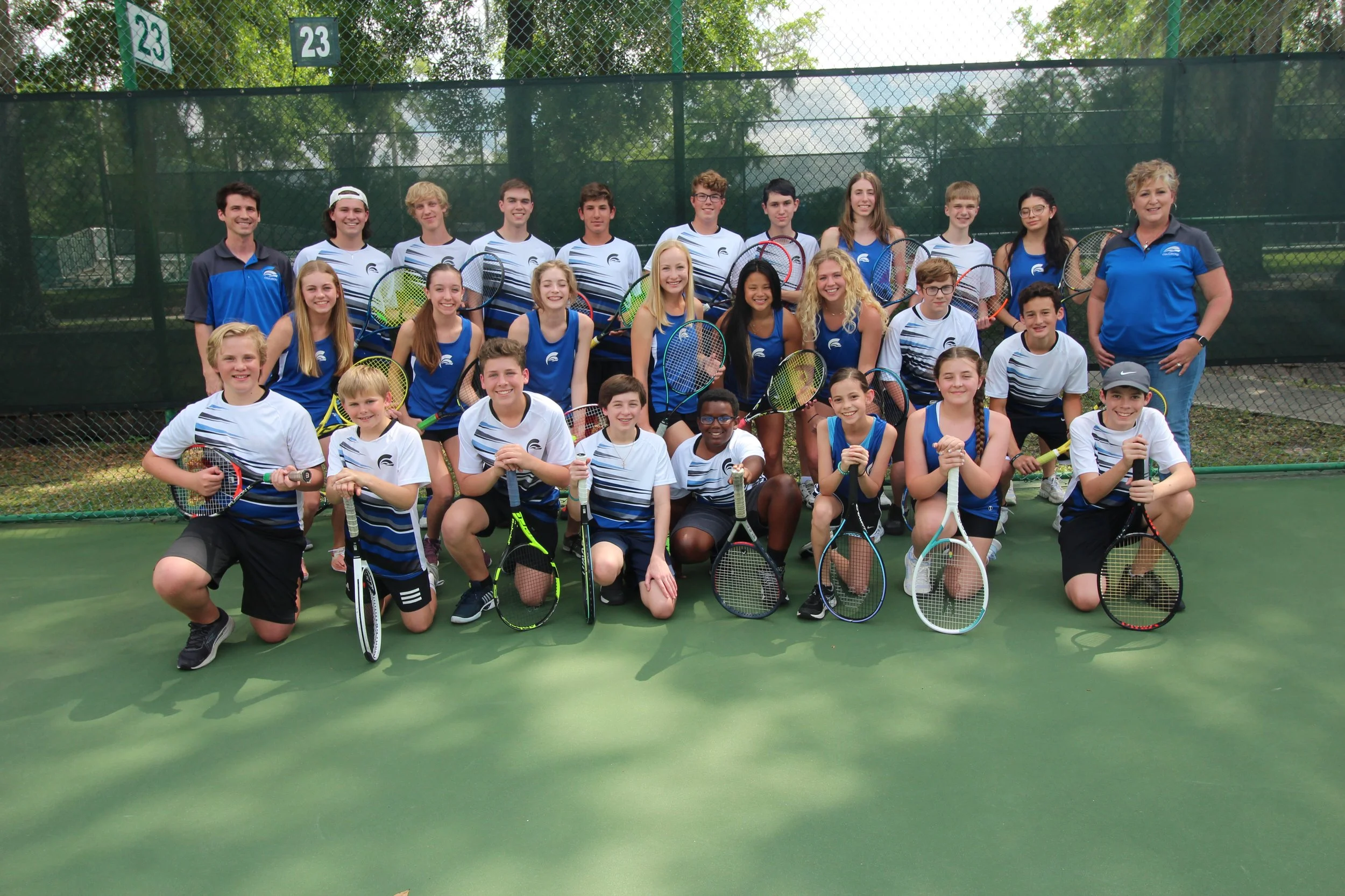The Tennis season begins in January and runs 10-13 weeks. The sport is open to all students in grades 6-12. There are boys and girls Varsity and JV teams and all teams practice together at the same time and location. This year's practices and home matches will be played at Sanlando Park in Altamonte Springs. A typical season includes 1-2 matches each week.